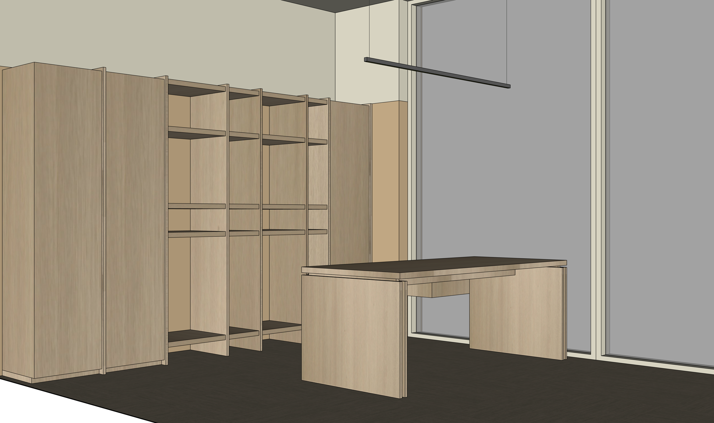3D modelling plays a pivotal role in our design process, enabling us to comprehend the overall ambiance of the space, facilitating a closer look at details and resolving how materials interact and intersect.