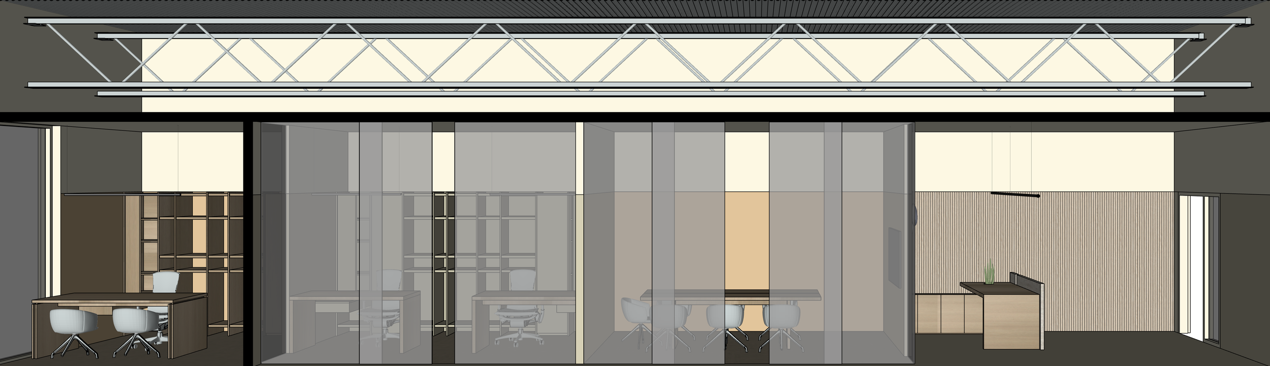 Interior design for a workspace that embraces a modular approach is paramount. This concept incorporates a thoughtful arrangement characterized by transparency among private workspaces, strategically designed to harness the benefits of natural light. The aim is not only to create an open and airy ambiance but also to strike a delicate balance by preserving the necessary levels of privacy.